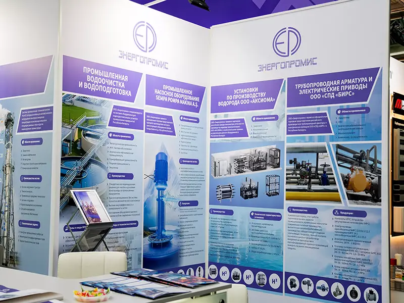 Здесь «Энергопромис» представила электролизные установки («Аксиома», РФ), которые используются для проведения электролиза, процесса разложения химических веществ под действием электрического тока. Данное оборудование имеет длительный срок эксплуатации – 30 лет и уже показало стабильную работу в различных климатических условиях.