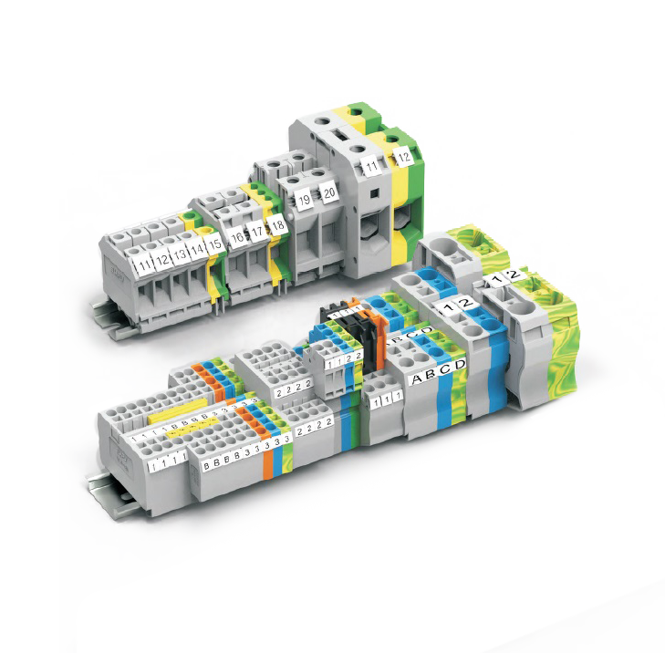 - пружинные клеммные блоки на рейке;